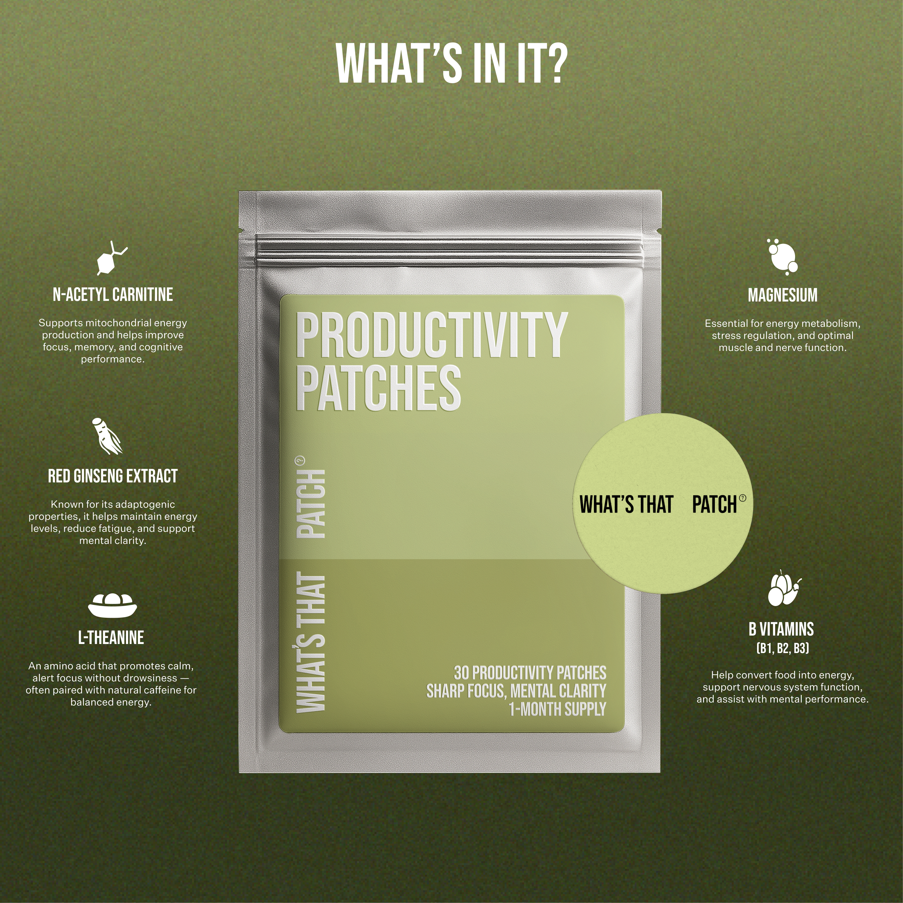 Our patches release carefully selected ingredients through your skin, delivering targeted well-being benefits directly into your bloodstream over 6–8 hours. By bypassing the digestive system, they ensure a steady, controlled effect—avoiding the peaks and dips of traditional methods. It’s wellness, simplified and sustained.